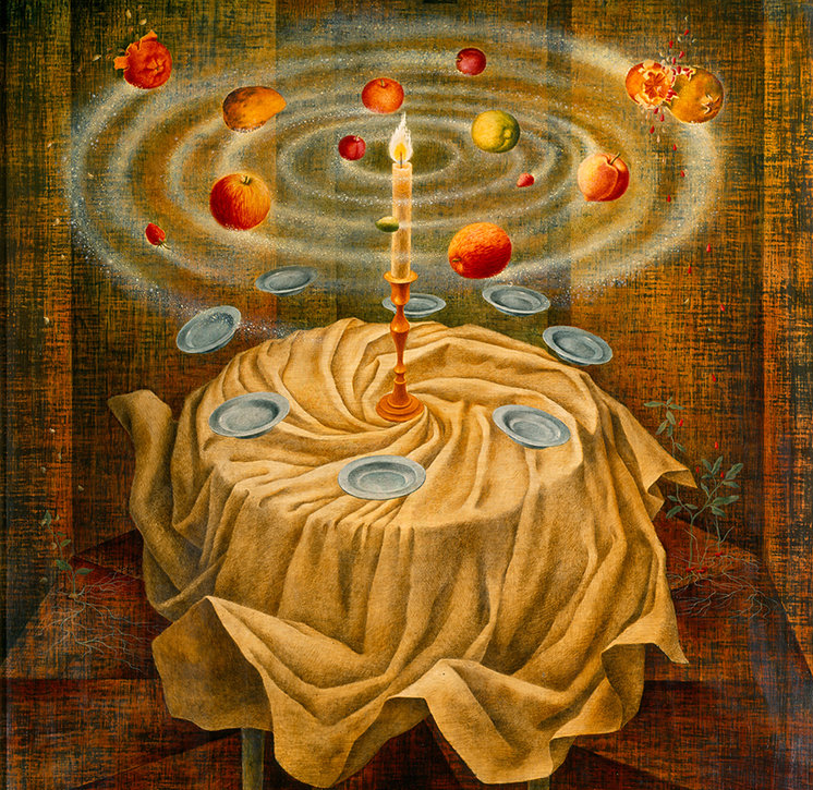 (Imagen: Fragmento de la pintura Naturaleza muerta resucitando. Remedios Varo, 1963)
